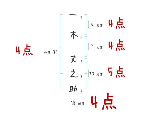 総運![]() | 一木丈之助さんの総運は18画の4つ星!情熱的で剛気。忍耐力があり信頼される。 あなたの人生を表す1番重要な運勢です。生涯を通じて影響する総合運となり、主に50歳以降の晩年期に影響を及ぼします。 |