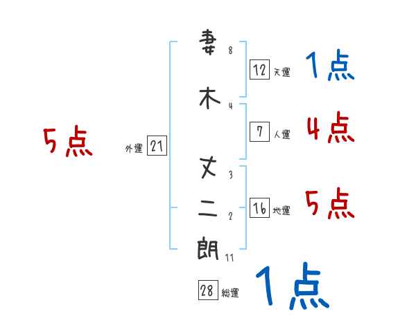 妻木丈二朗さんの画数の鑑定結果