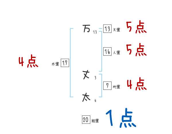 外運![]() | 万丈太さんの外運は17画の4つ星!積極的な行動力。地位を気づき財産を手に入れる。純粋な心と直感力。 生活面を象徴する運勢です。外部から受ける影響力を表し、結婚運、家庭運や職場、環境への順応性を表します。 |