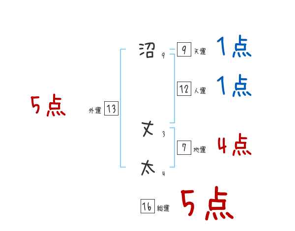天運![]() | 沼丈太さんの天運は9画の1つ星!消極的で才能を発揮することが苦手なことも。周りの意見に耳を傾けましょう。 家系が持つ宿命的な運勢を表します。祖先から受け継いだ苗字ですので自分の力が及びません。家柄を象徴します。 |
