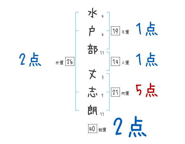 水戸部丈志朗さんの画数の鑑定結果