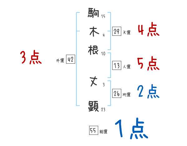 天運![]() | 駒木根丈顕さんの天運は29画の4つ星!完全主義で才能がある。厳格な心の持ち主。 家系が持つ宿命的な運勢を表します。祖先から受け継いだ苗字ですので自分の力が及びません。家柄を象徴します。 |