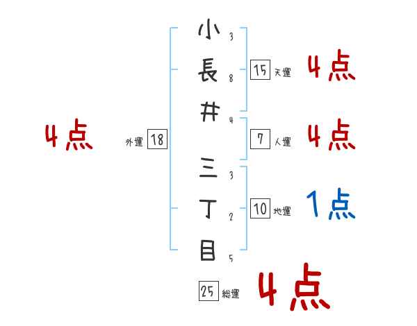 小長井三丁目さんの画数の鑑定結果