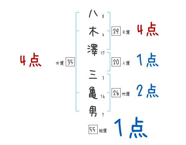 八木澤三亀男さんの画数の鑑定結果