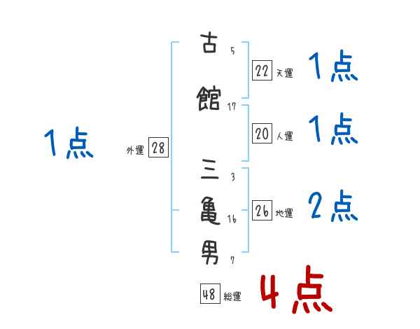 古館三亀男さんの画数の鑑定結果