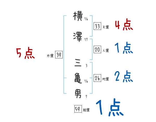 横澤三亀男さんの画数の鑑定結果
