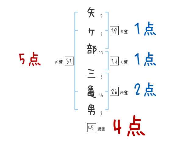 矢ヶ部三亀男さんの画数の鑑定結果