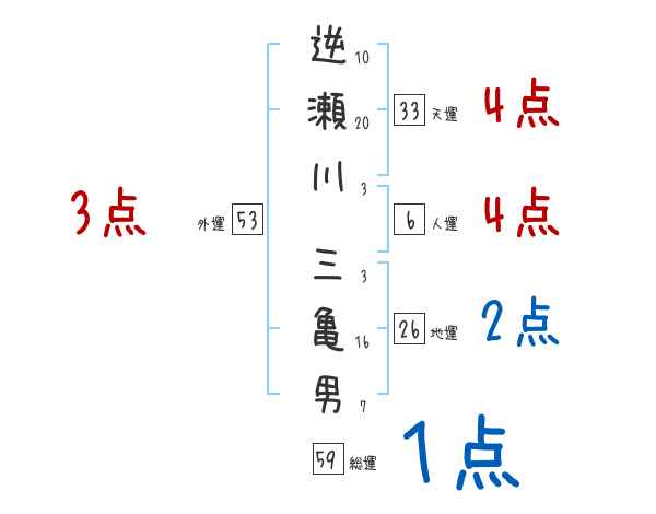 逆瀬川三亀男さんの画数の鑑定結果