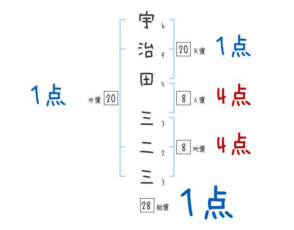 総運![]() | 宇治田三二三さんの総運は28画の1つ星!家庭環境に注意。スポーツで活躍できる能力があるかも。 あなたの人生を表す1番重要な運勢です。生涯を通じて影響する総合運となり、主に50歳以降の晩年期に影響を及ぼします。 |