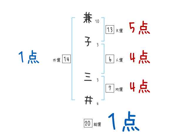 兼子三井さんの画数の鑑定結果