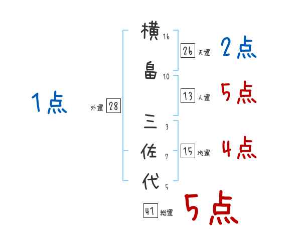 外運![]() | 横畠三佐代さんの外運は28画の1つ星!家庭環境に注意。スポーツで活躍できる能力があるかも。 生活面を象徴する運勢です。外部から受ける影響力を表し、結婚運、家庭運や職場、環境への順応性を表します。 |