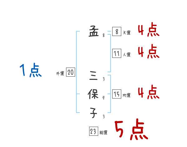 孟三保子さんの画数の鑑定結果