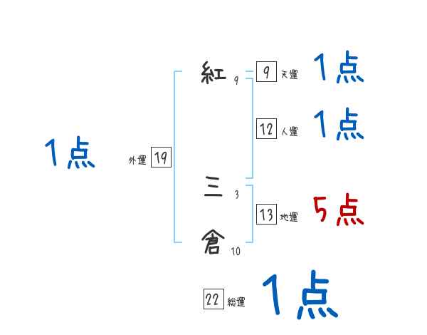 総運![]() | 紅三倉さんの総運は22画の1つ星!努力することが苦手ないっぽう手先が器用。芸術性にも優れる。 あなたの人生を表す1番重要な運勢です。生涯を通じて影響する総合運となり、主に50歳以降の晩年期に影響を及ぼします。 |