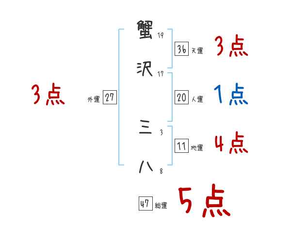 蟹沢三八さんの画数の鑑定結果