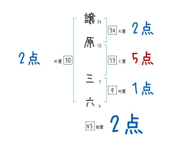 譲原三六さんの画数の鑑定結果