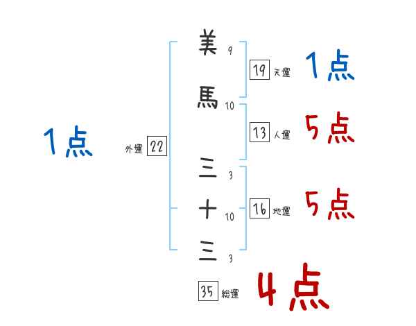 美馬三十三さんの画数の鑑定結果