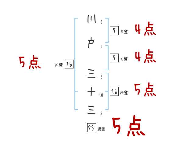 川戸三十三さんの画数の鑑定結果