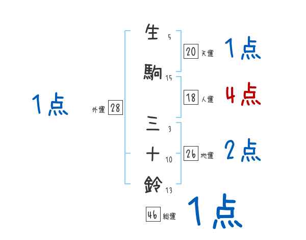 生駒三十鈴さんの画数の鑑定結果