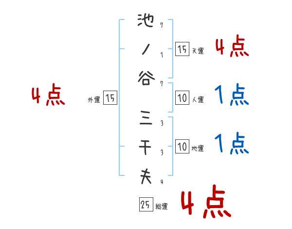 天運![]() | 池ノ谷三千夫さんの天運は15画の4つ星!人徳があり出世する。順調に物事を進め円満な人生。 家系が持つ宿命的な運勢を表します。祖先から受け継いだ苗字ですので自分の力が及びません。家柄を象徴します。 |