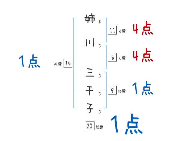 外運![]() | 姉川三千子さんの外運は14画の1つ星!人に対して優しいがストレスを溜め込みがち。人間関係のトラブルを避けるよう気をつけましょう。 生活面を象徴する運勢です。外部から受ける影響力を表し、結婚運、家庭運や職場、環境への順応性を表します。 |