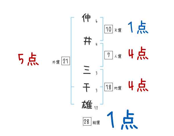 総運![]() | 仲井三千雄さんの総運は28画の1つ星!家庭環境に注意。スポーツで活躍できる能力があるかも。 あなたの人生を表す1番重要な運勢です。生涯を通じて影響する総合運となり、主に50歳以降の晩年期に影響を及ぼします。 |