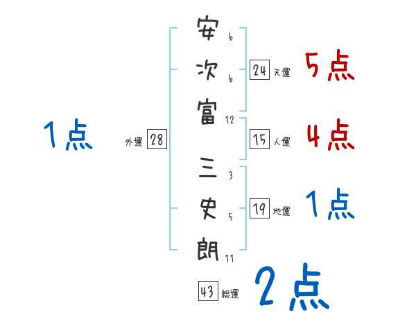 安次富三史朗さんの画数の鑑定結果