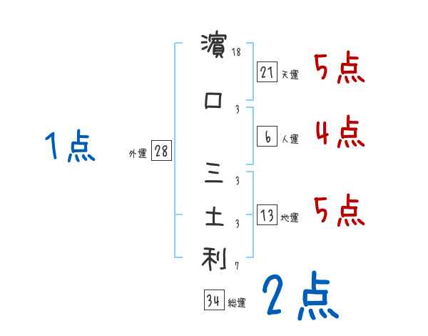 外運![]() | 濵口三土利さんの外運は28画の1つ星!家庭環境に注意。スポーツで活躍できる能力があるかも。 生活面を象徴する運勢です。外部から受ける影響力を表し、結婚運、家庭運や職場、環境への順応性を表します。 |