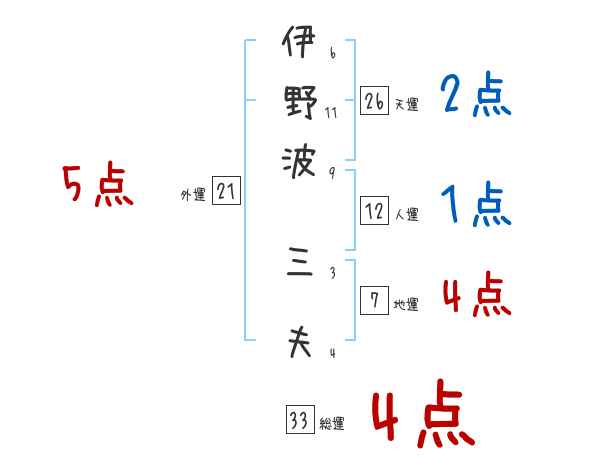 伊野波三夫さんの画数の鑑定結果