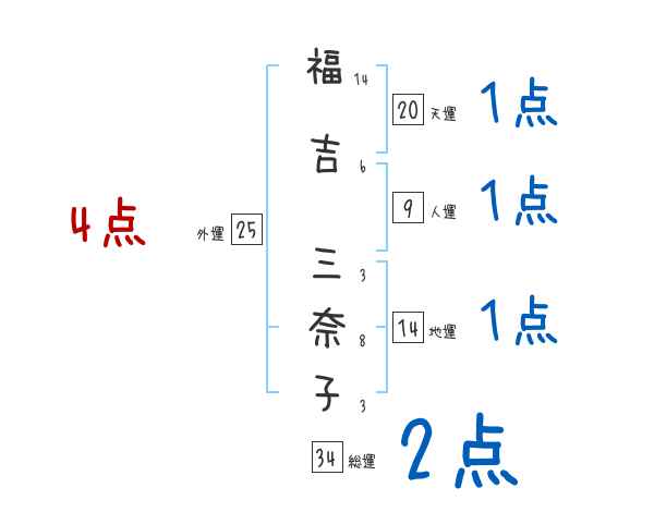 福吉三奈子さんの画数の鑑定結果