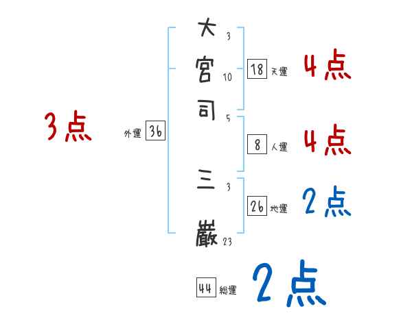大宮司三巌さんの画数の鑑定結果