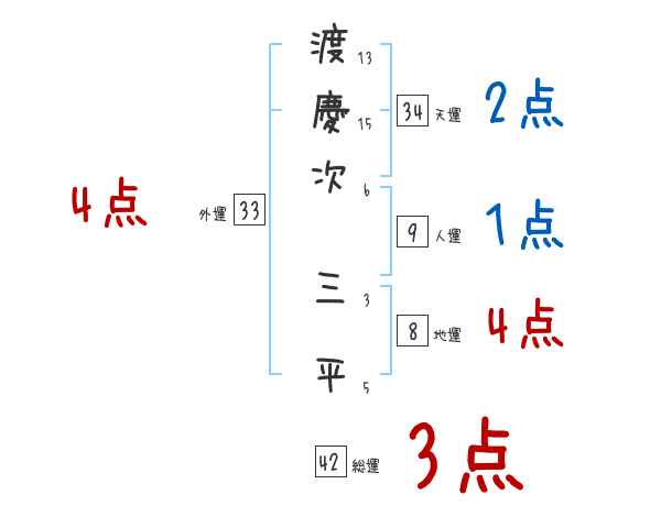 渡慶次三平さんの画数の鑑定結果