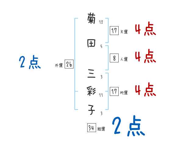 菊田三彩子さんの画数の鑑定結果