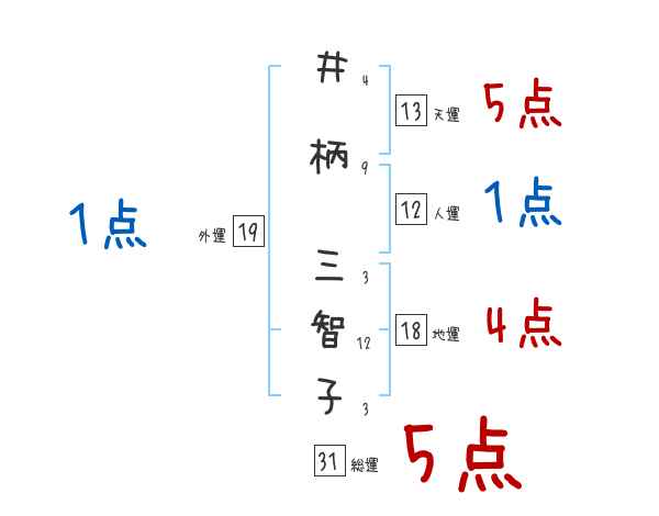井柄三智子さんの画数の鑑定結果