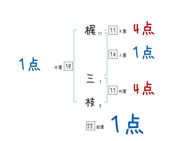 梶三枝さんの画数の鑑定結果