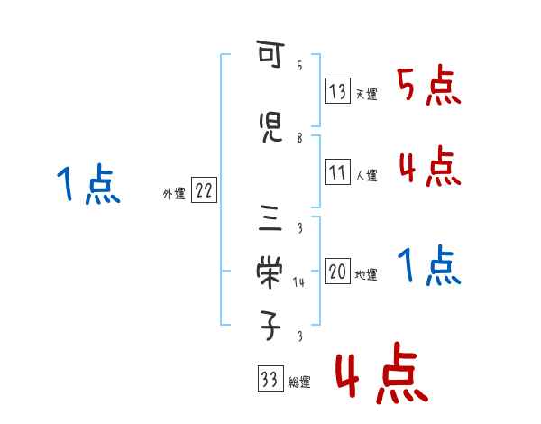 外運![]() | 可児三栄子さんの外運は22画の1つ星!努力することが苦手ないっぽう手先が器用。芸術性にも優れる。 生活面を象徴する運勢です。外部から受ける影響力を表し、結婚運、家庭運や職場、環境への順応性を表します。 |