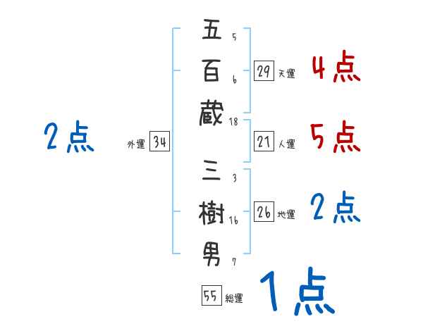 五百蔵三樹男さんの画数の鑑定結果