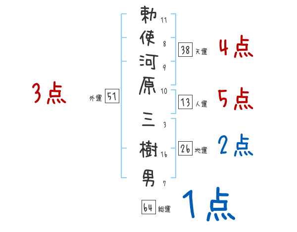 勅使河原三樹男さんの画数の鑑定結果
