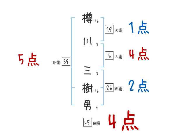 樽川三樹男さんの画数の鑑定結果