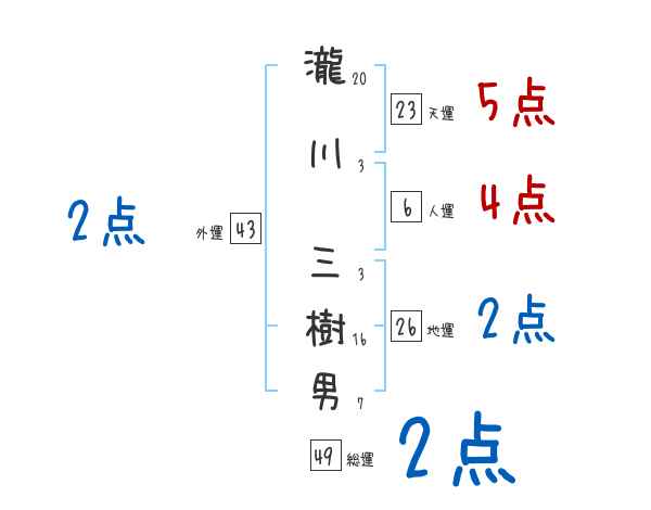 瀧川三樹男さんの画数の鑑定結果