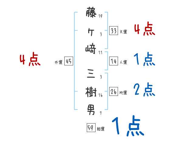 藤ヶ﨑三樹男さんの画数の鑑定結果