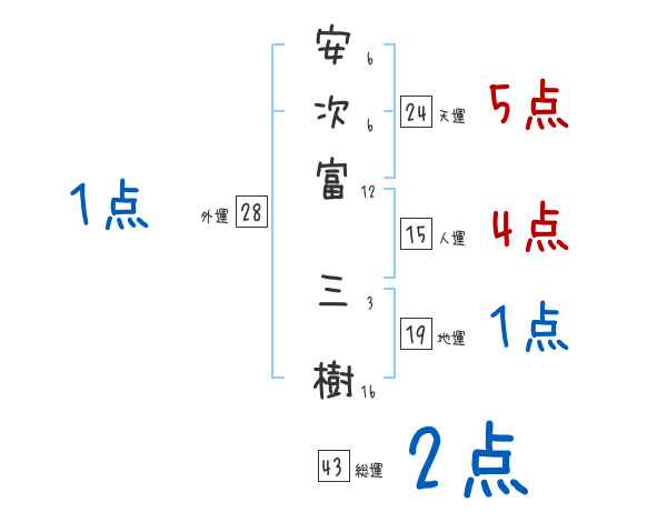 安次富三樹さんの画数の鑑定結果