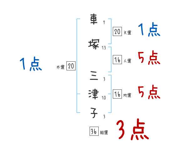車塚三津子さんの画数の鑑定結果
