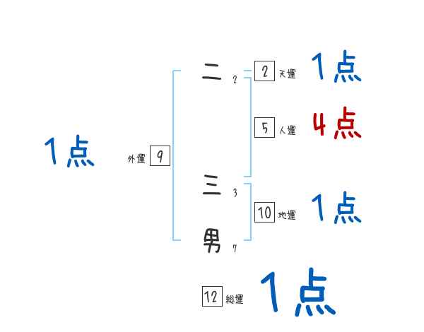 二三男さんの画数の鑑定結果