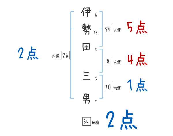 総運![]() | 伊勢田三男さんの総運は34画の2つ星!独創性に優れるが、自尊心が強く災難に注意しましょう。 あなたの人生を表す1番重要な運勢です。生涯を通じて影響する総合運となり、主に50歳以降の晩年期に影響を及ぼします。 |