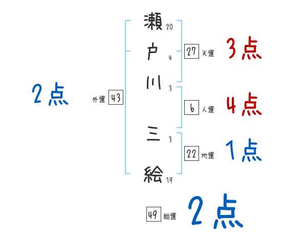 瀬戸川三絵さんの画数の鑑定結果