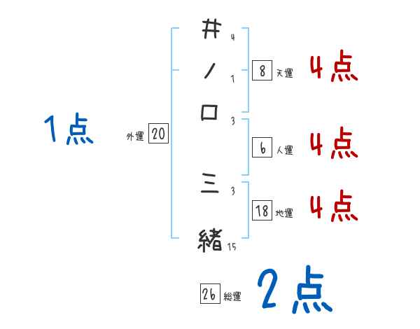 人運![]() | 井ノ口三緒さんの人運は6画の4つ星!慎重な努力家で信頼を得る。誠実な精神で向上心に優れる。 性格や才能などを表す2番目に重要な運勢です。人間関係や協調性、社会的な成功に影響します。主に20歳から50歳ぐらいまでの中年期の運勢を表します。 |