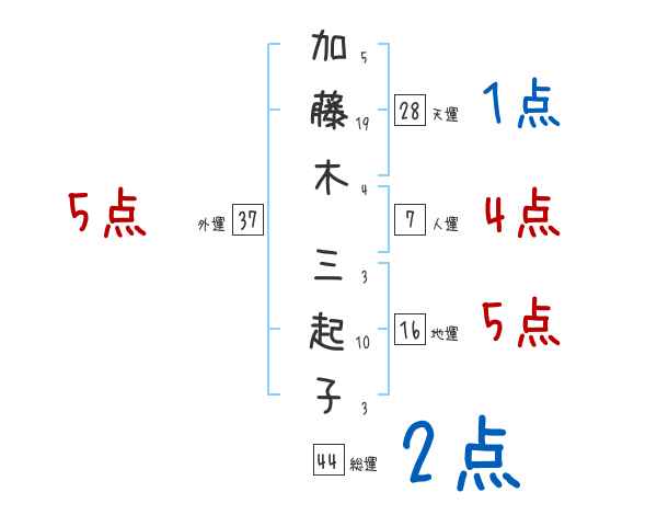 加藤木三起子さんの画数の鑑定結果