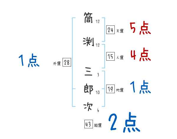 総運![]() | 筒渕三郎次さんの総運は43画の2つ星!頑固な性格で独立心が強いかも。やや非現実的で浪費に注意しましょう。 あなたの人生を表す1番重要な運勢です。生涯を通じて影響する総合運となり、主に50歳以降の晩年期に影響を及ぼします。 |
