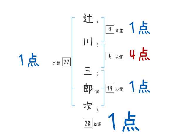 総運![]() | 辻川三郎次さんの総運は28画の1つ星!家庭環境に注意。スポーツで活躍できる能力があるかも。 あなたの人生を表す1番重要な運勢です。生涯を通じて影響する総合運となり、主に50歳以降の晩年期に影響を及ぼします。 |