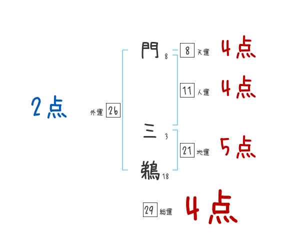門三鵜さんの画数の鑑定結果